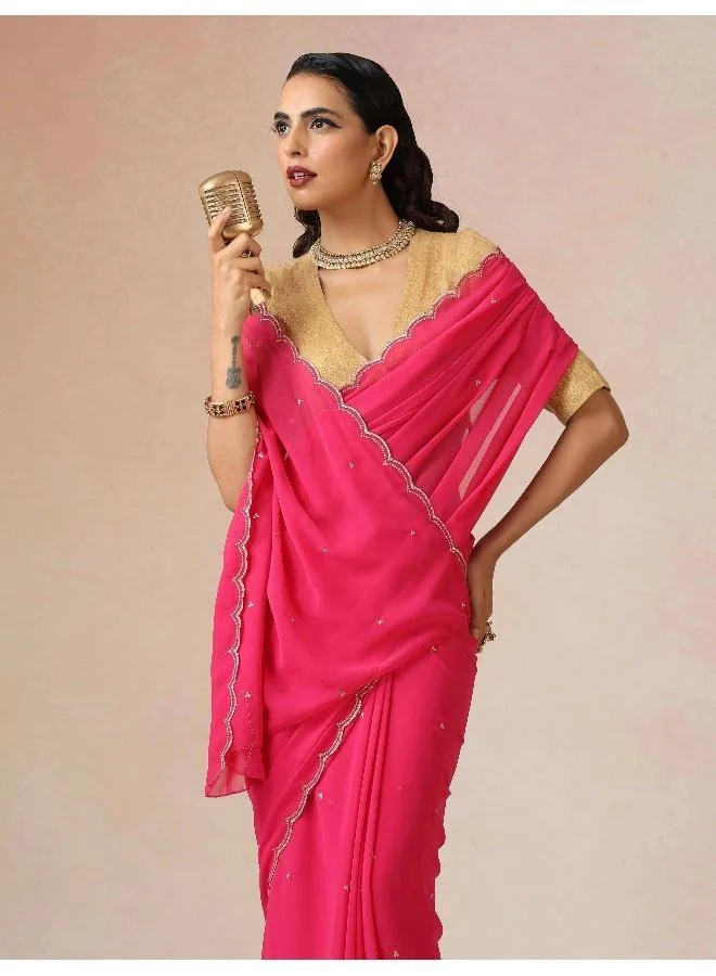 trueBrowns Mustard Tissue Stripe Saree With Unstitched Blouse