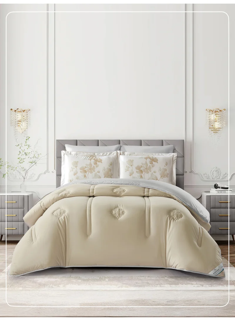 Cotton 6-Piece King Comforter Bedding Set Fits 200x200 cm – 350 GSM Filling with Fitted Sheet, Pillow Shams & Pillowcases, Stylish Printed Elegance