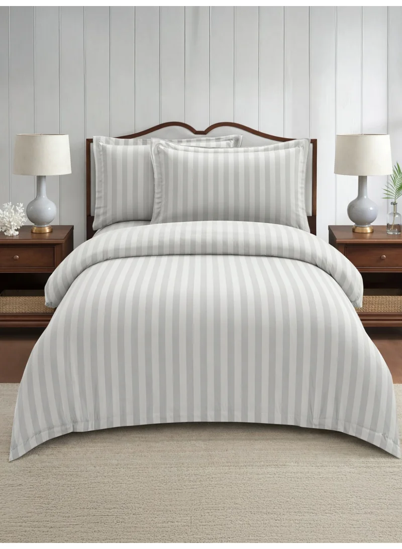 Hotel Striped Comforter Set, Fits 140x200 cm Size Bed, Removable Duvet Filler Included, 5-Pcs Single Size, 350 GSM Filling.