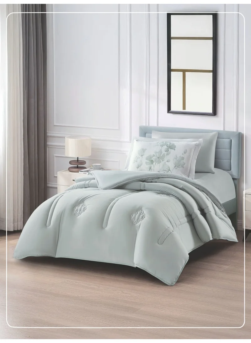 Bedding Comforter Set, Twin Size Fits 140 cm x 200 cm - 4-Pcs Solid Quilted Bed Set, Microfiber Fabric - 1 Comforter, 1 Fitted Sheet And 1 Pillow Shams, 1 Pillow Cases