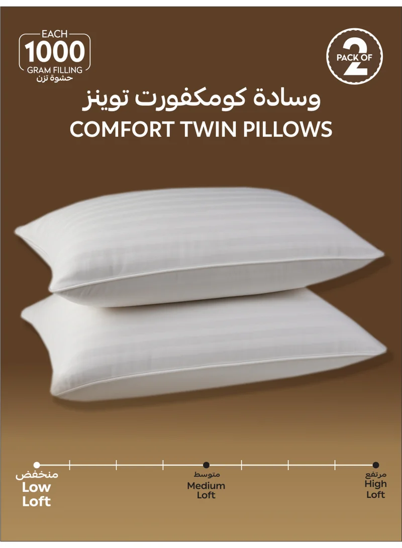 Bed Pillow, 2 Pieces, 1000 Gram, Size 50x75 cm, Luxury Down Alternative Filling, Soft Brushed Microfiber, Anti-Allergy, White, Pack of 2