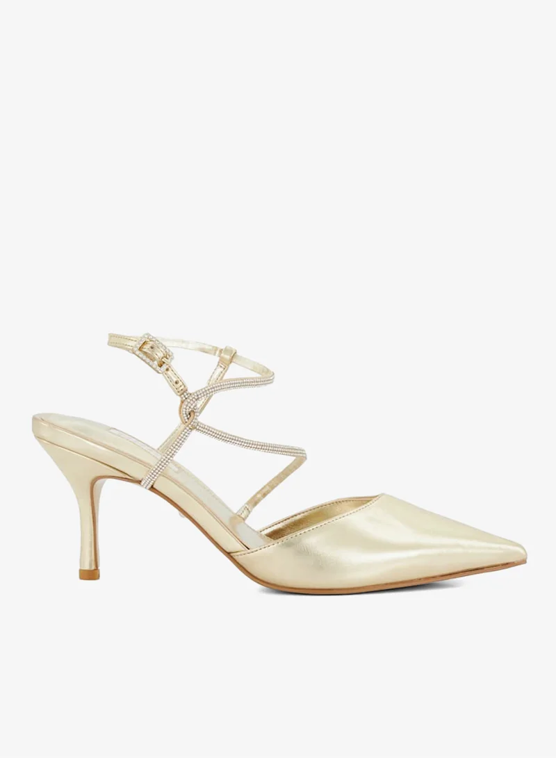 Clarisse Embellished Cross Strap Low Heel Pumps
