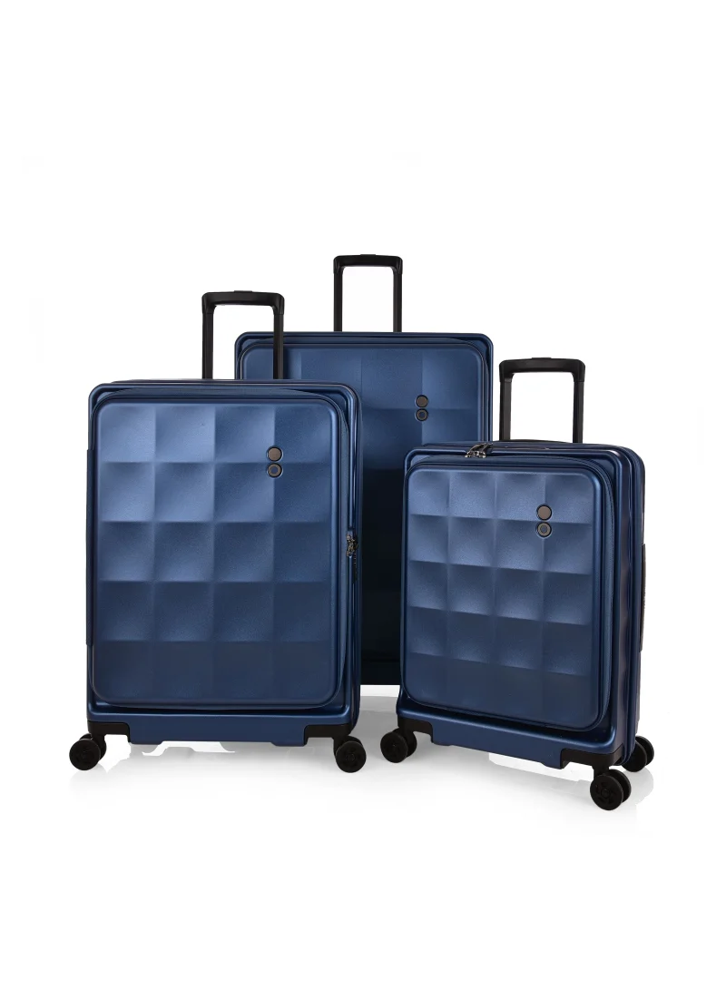 Echolac Hard Luggage PC Trolley Travel Bag Front Open Anti Theft 3Pc Set Size 20/24/28 Inch Blue