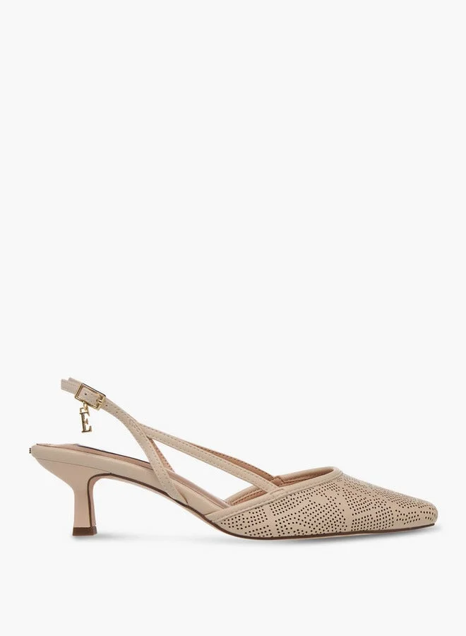 Women's Monogram Embossed Slingback Shoes with Metal Accent