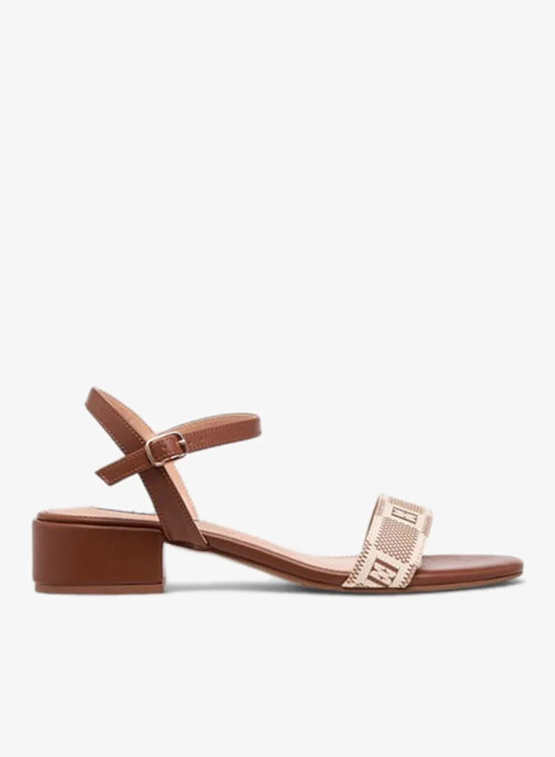 Women's Damier Logo Detail Block Heel Sandals with Buckle Closure