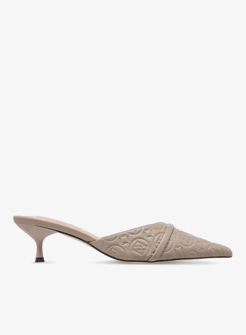 Women's Monogram Embossed Slip-On Mules with Kitten Heels