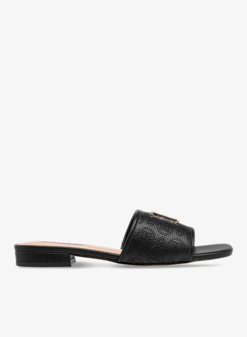 Women's Monogram Embossed Slip-On Sandals with Kitten Heels