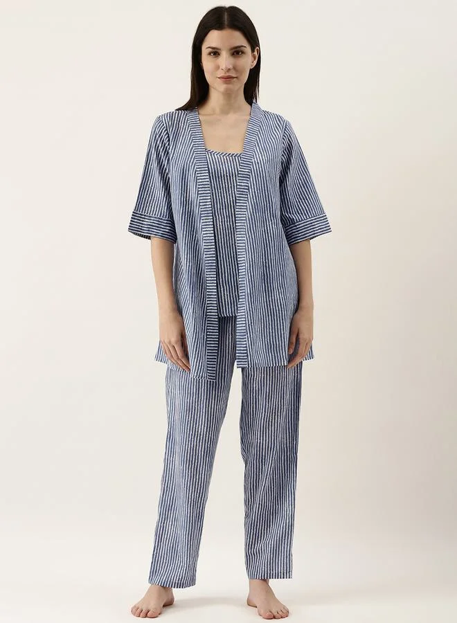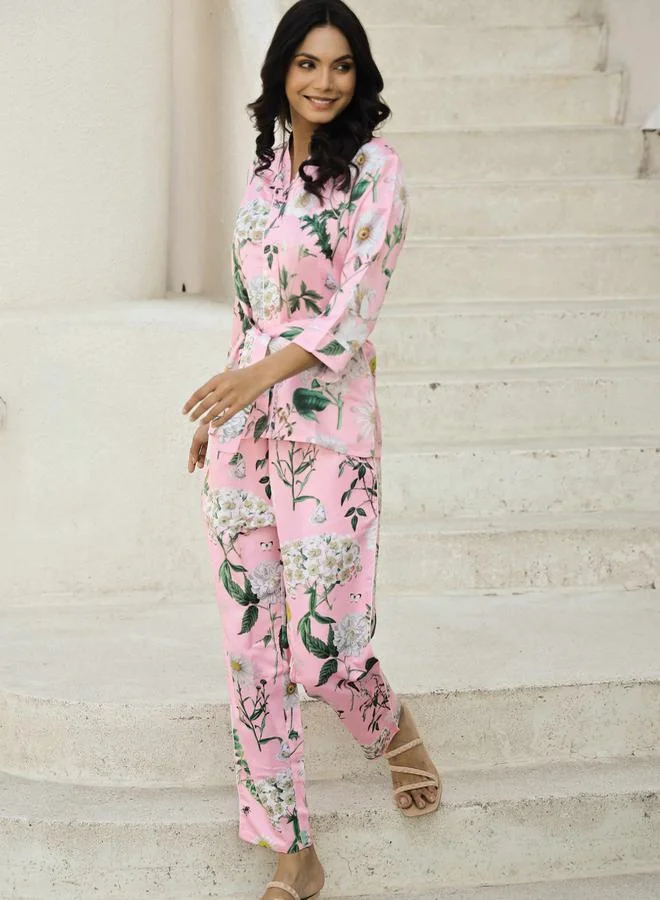 ISHIN Printed V-Neck Kurta with Trousers and Dupatta Set
