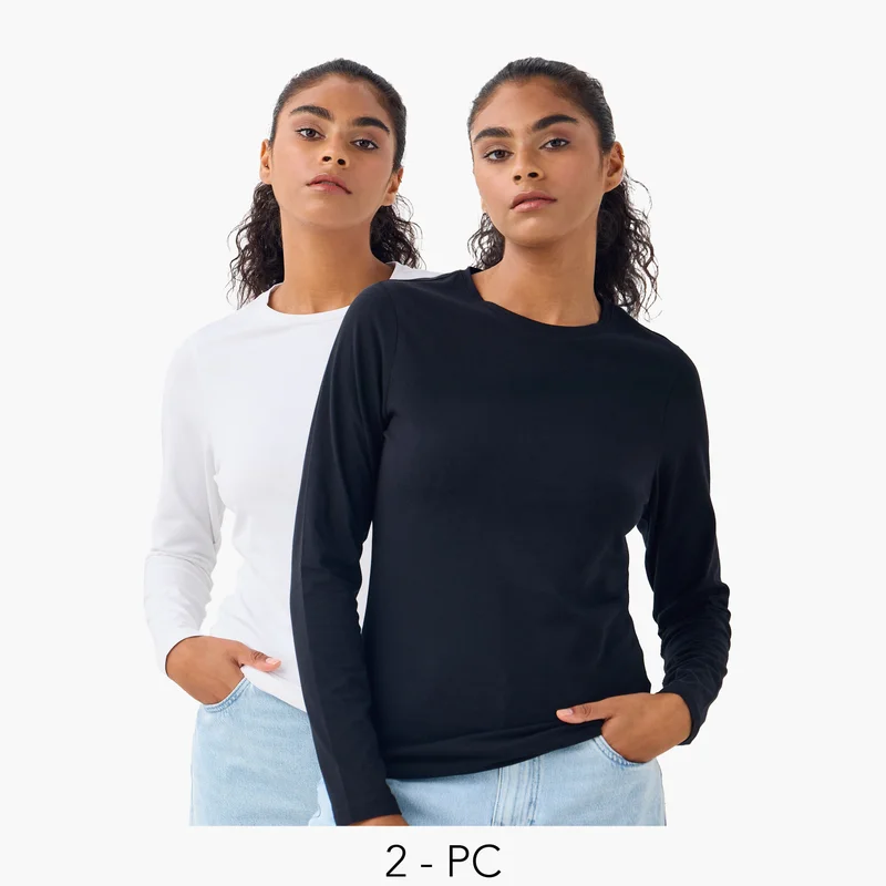 Set of 2 - Crew Neck T-shirt with Long Sleeves