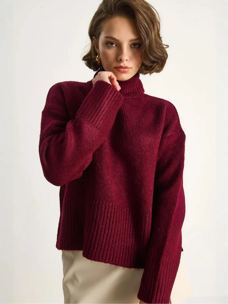 Women's Maroon 100% Acrylic Regular Fit Sweater