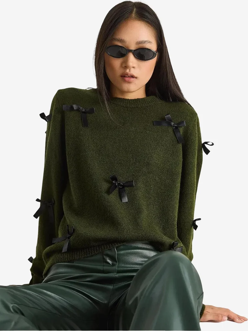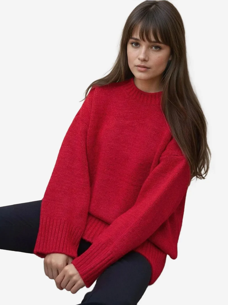 Gorgeous Red Colourblocked Knitted Sweater for Women