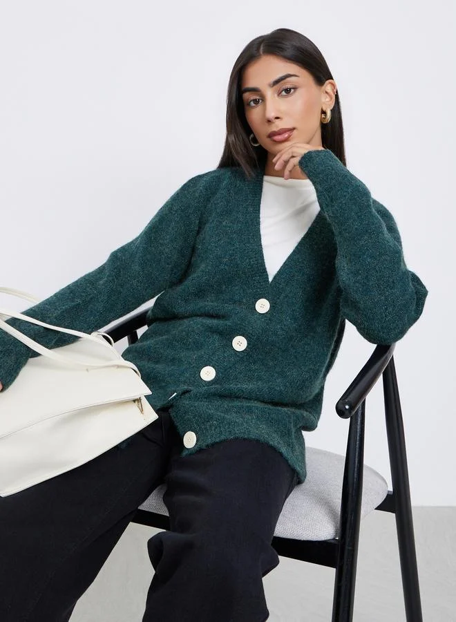 LUCCI Textured Oversized V-Neck Tie Closure Cardigan