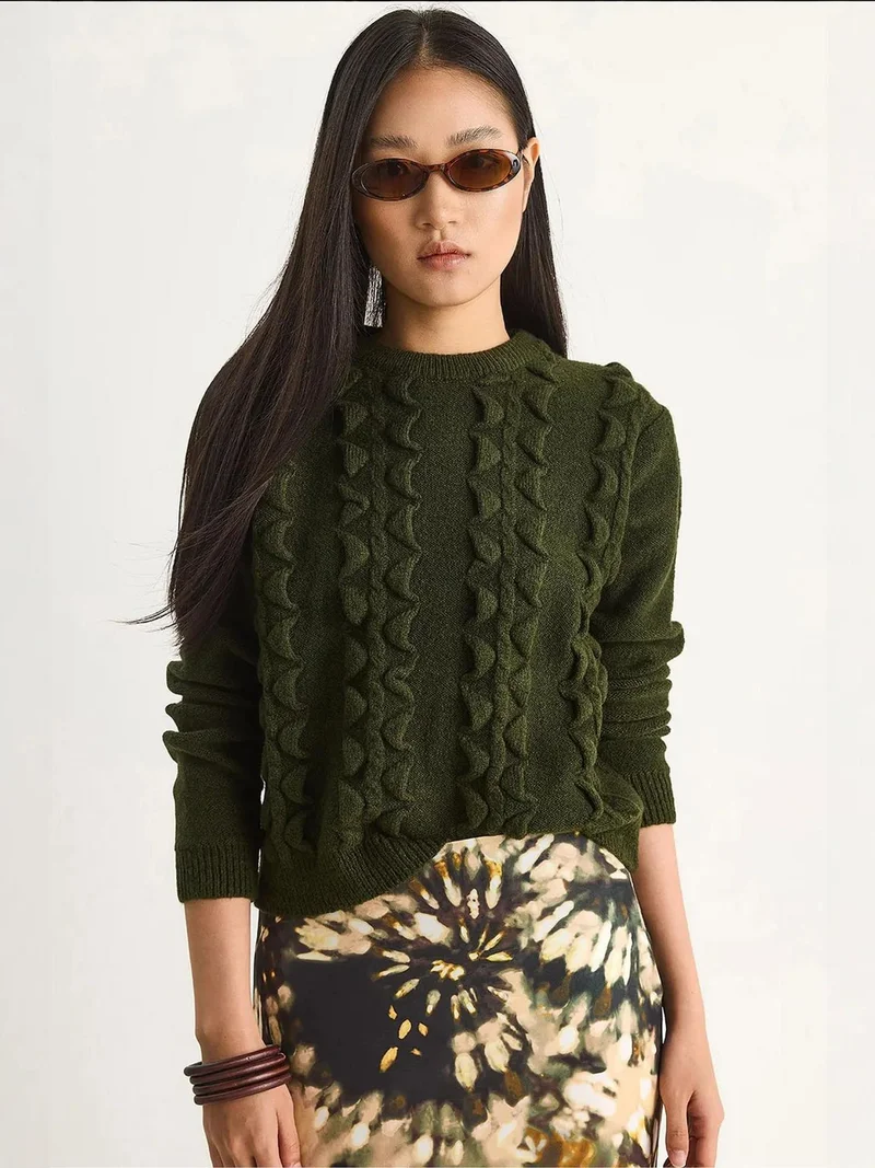 Mixray Cable Knit Pattern Crew Neck Sweater