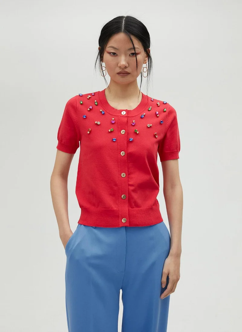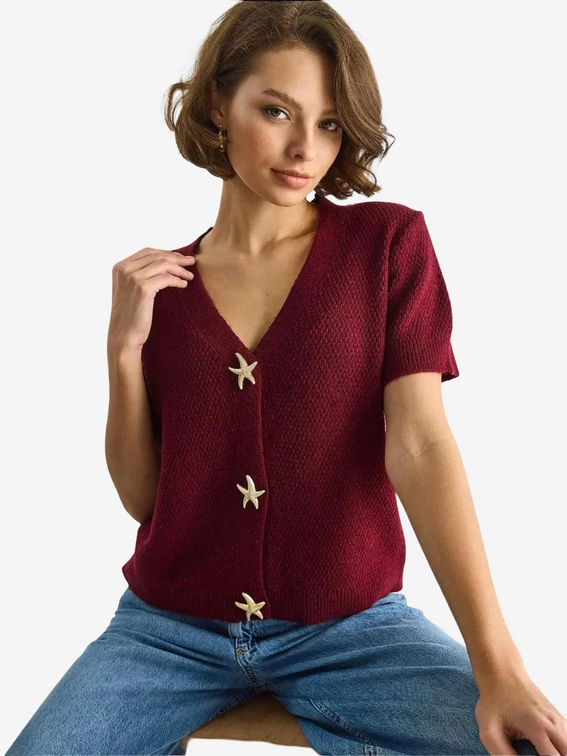 LUCCI Frilly Buttoned Cardigan with Crew Neck