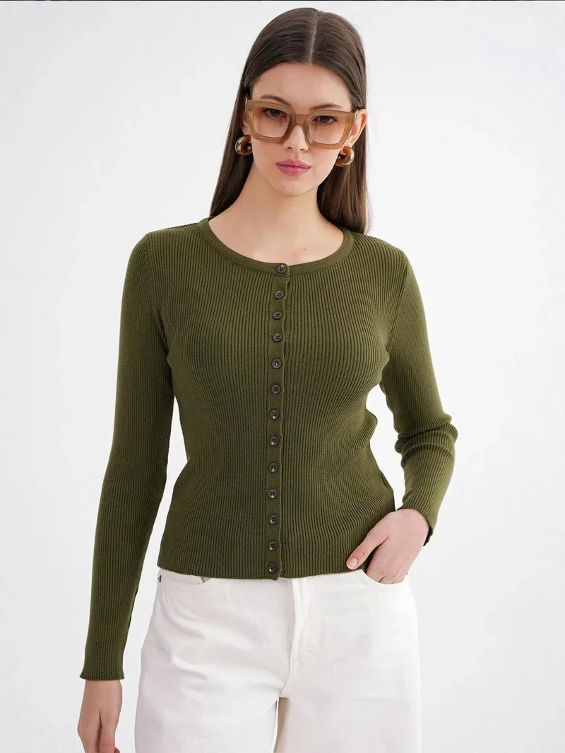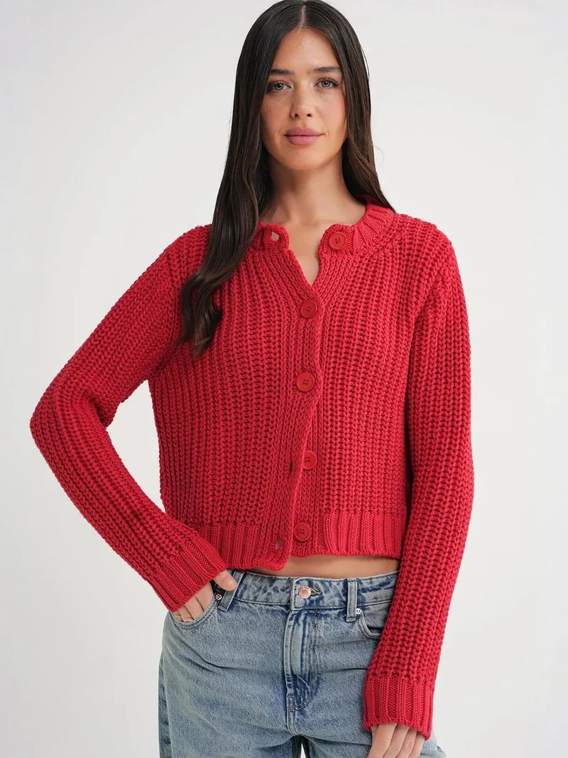 LUCCI Ribbed Thick Knit Cardigan with Button Closure