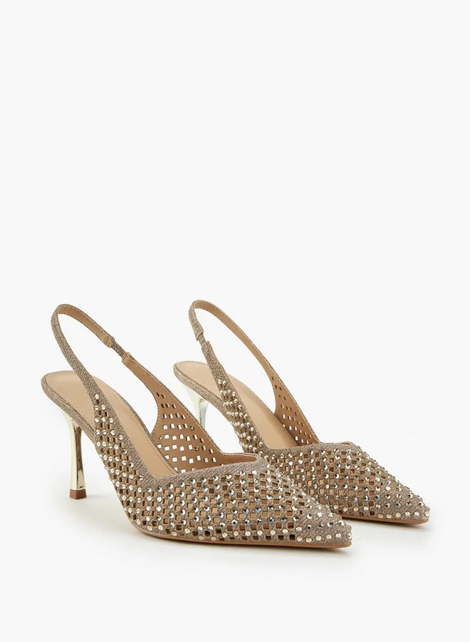 Embellished Slingback Peep-Toe Sandals with Stiletto Heels