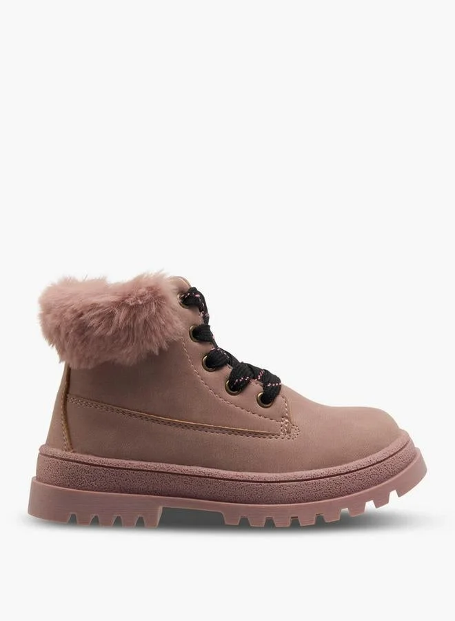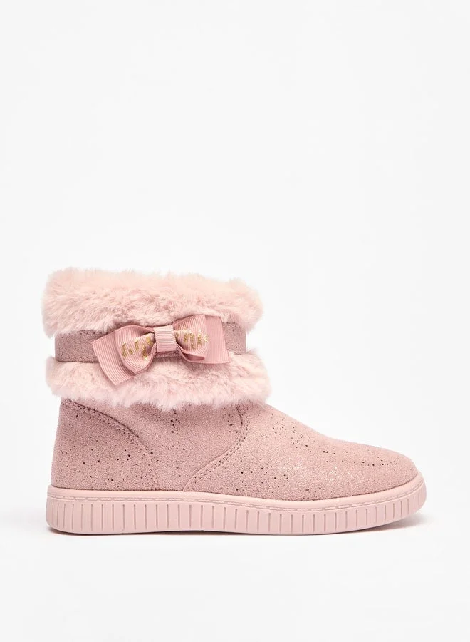 Girl's Faux Fur Ankle Boots with Bow Detail and Zip Closure