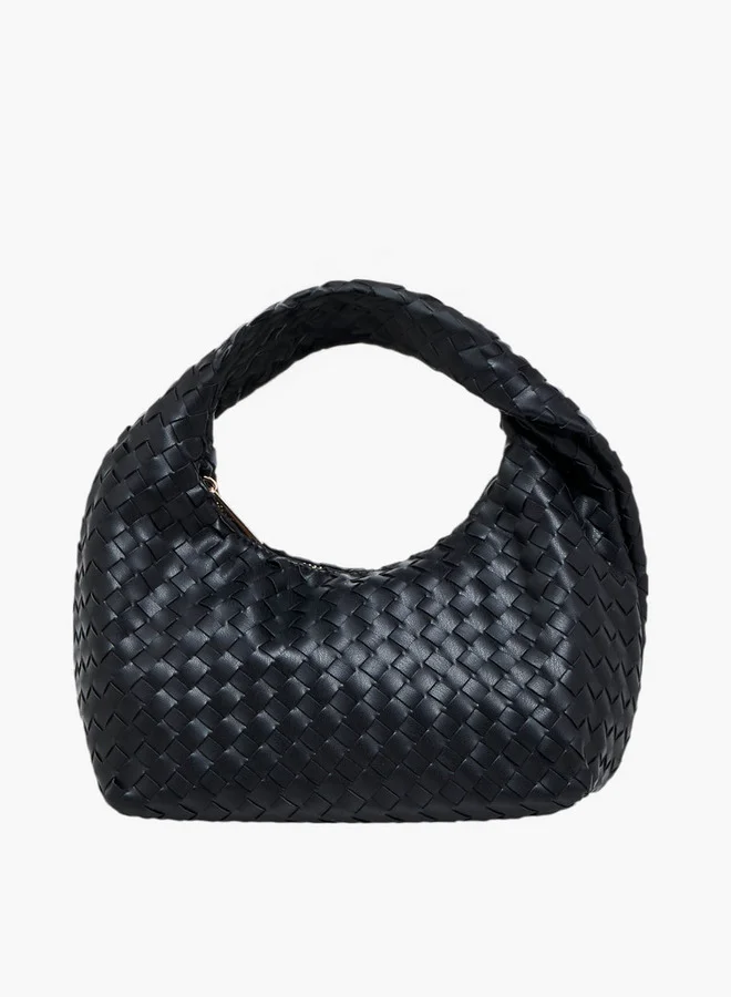 Textured Crossbody Bag with Detachable Strap and Zip Closure