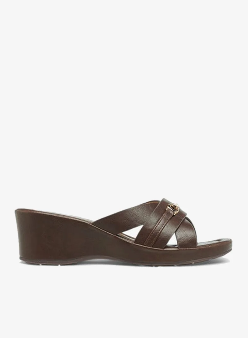 Women Metal Accent Slip-On Sandals with Wedge Heels