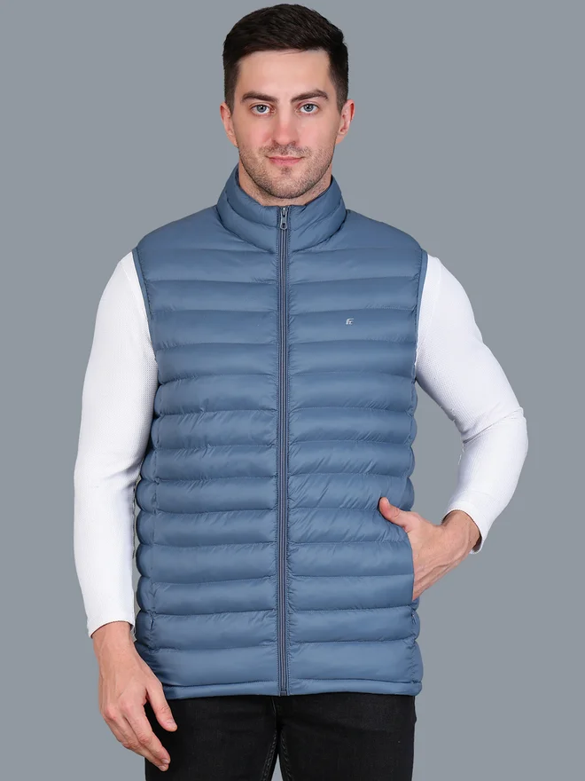 Men Blue Sleeveless Puffer Jacket