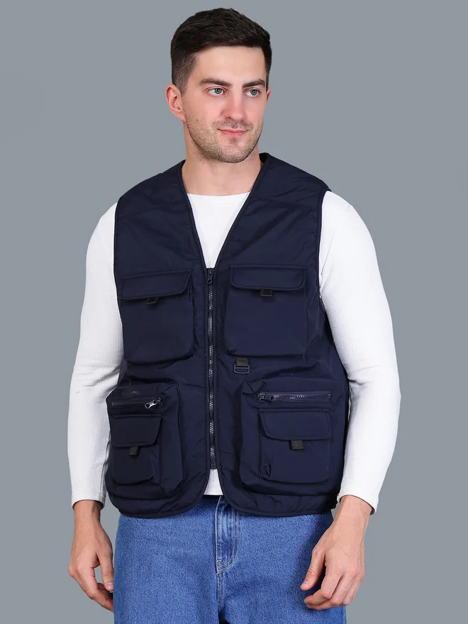 Men Navy Blue Utility Vest