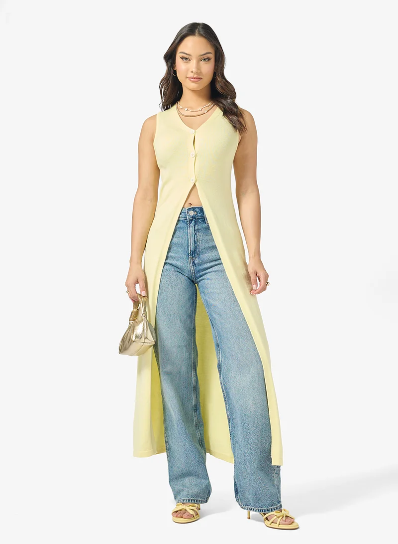 Longline Button Up Vest with Pocket Detail