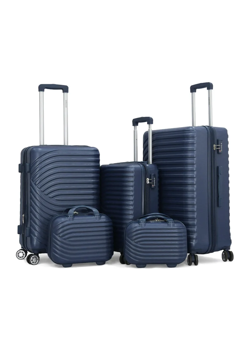 Hardshell Luggage Double Spinner Trolley Bag 5 Pieces Set,Navy (BC-12",BC-14",S-20",M-24",L-28")