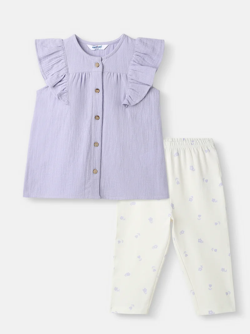 Cotton Embroidered Gingam Top & Frill Shorts Set
