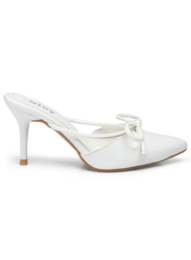 GNIST Plain Pointed Toe Stiletto Heel Mules with Bow Detail