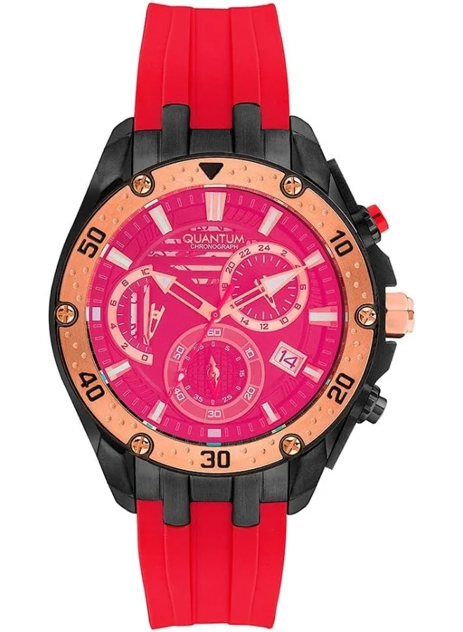 Men's Quartz Movement Watch, Chronograph Display and Silicone Strap - HNG859.658, Red
