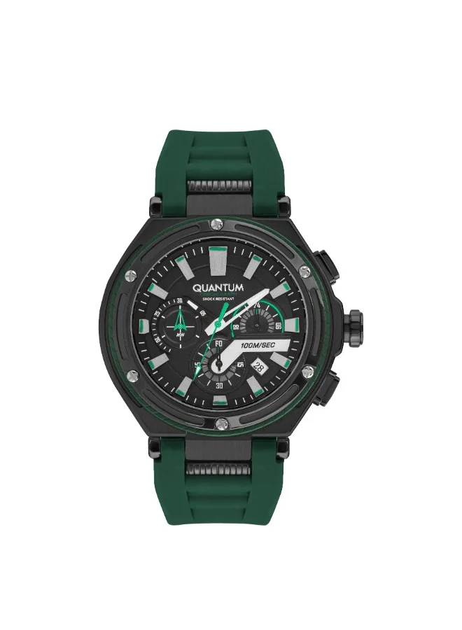 Men's Quartz Movement Watch, Chronograph Display and Silicone Strap - HNG1033.375, Green