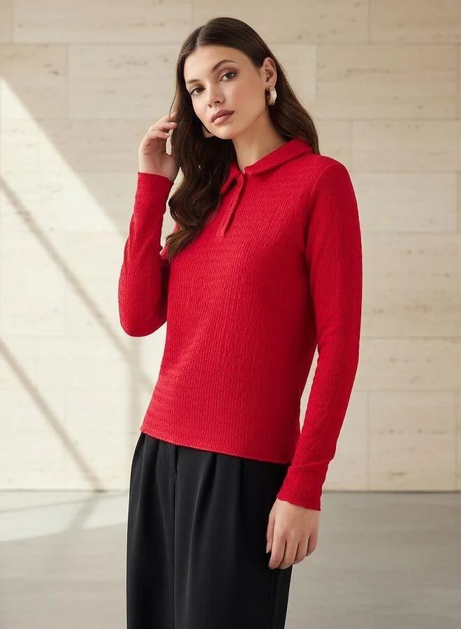 2Xtremz Regular Fit Striped Collared Tricot Sweater