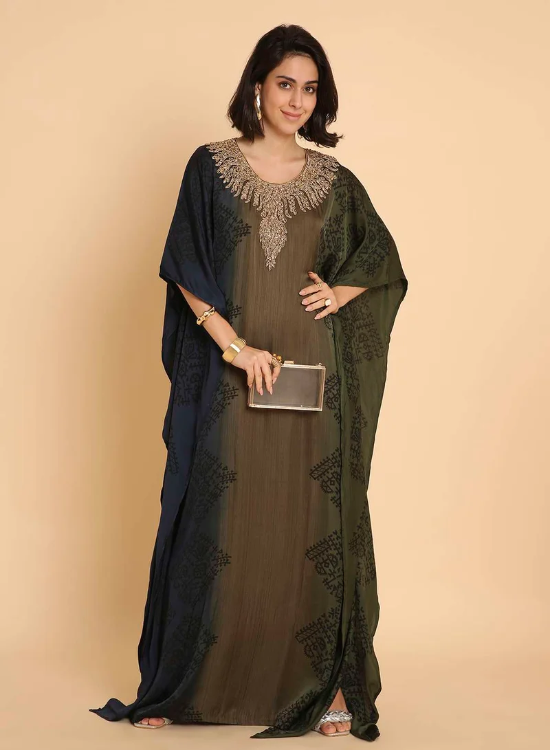 Regal Ombre Kaftan Jalabiya Dress - Embellished Arabic Elegance