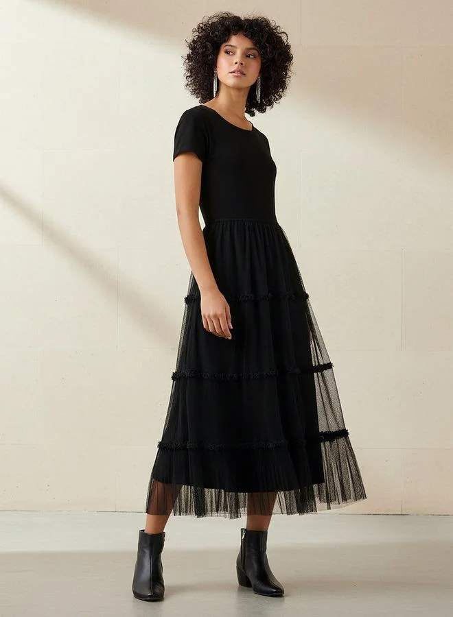 2Xtremz A-line Midi Dress with Ruffle Trim