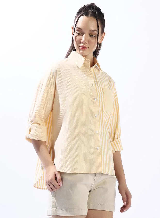 Oversized Solid Shirt with Drop Shoulder Sleeves