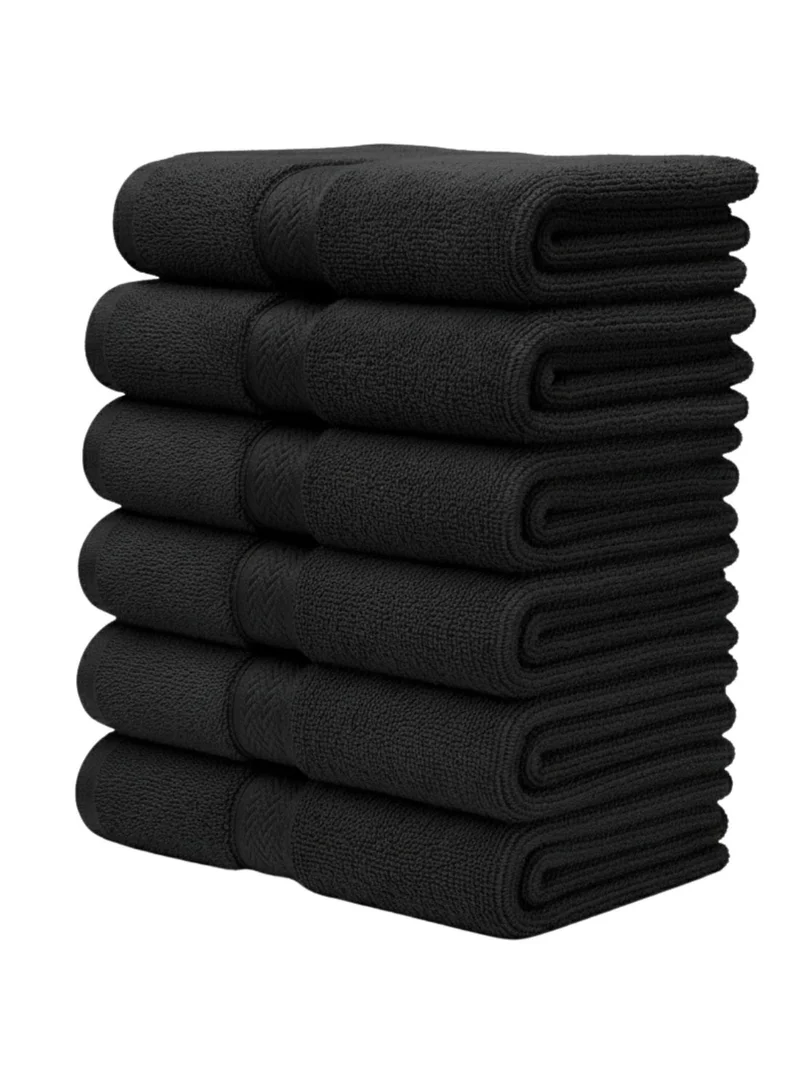 Luxury Hand Towels Set of 6 – 100% Egyptian Cotton, 16x30 Inches – Ultra Soft & Absorbent – Premium Hotel, Spa & Bathroom Towels – Quick Dry & Durable (6, Black)