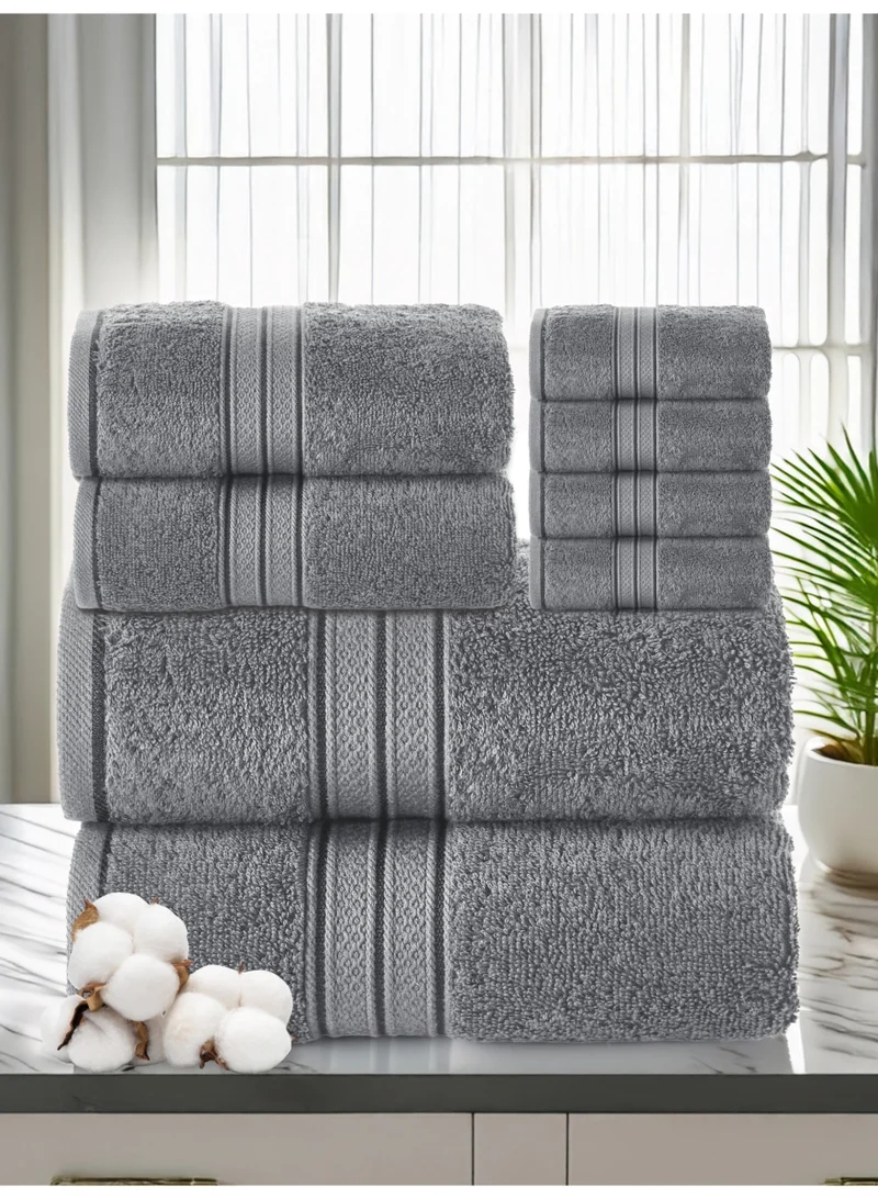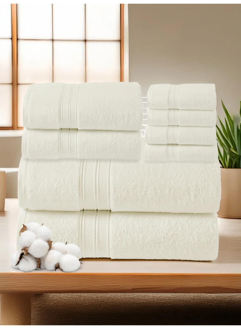 8 Pcs Premium Towel Set - 2 Bath Towels, 2 Hand Towels & 4 Washcloths | 100% Combed Cotton 600 GSM | Quick Dry, Ultra-Absorbent, Thick & Plush | Ideal for Bath, Spa, Gym, Hotel & Everyday Luxury