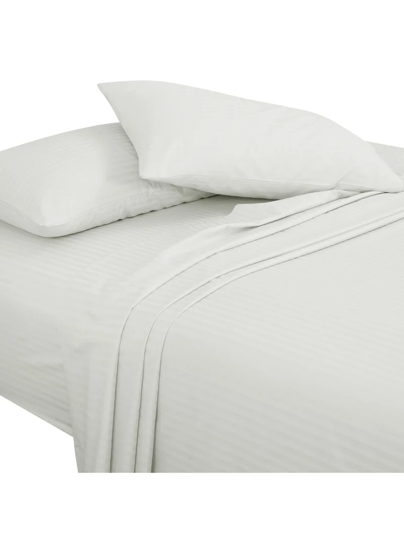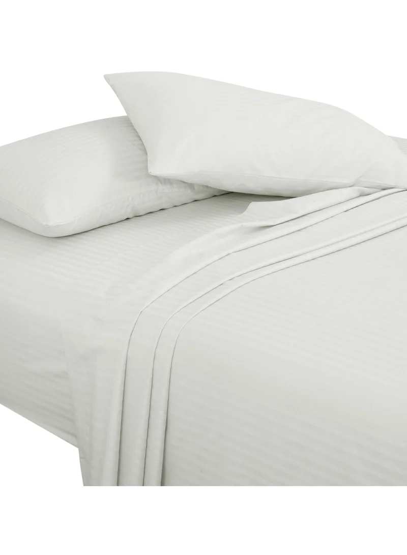 Bliss Casa 3 Pieces 1cm Stripe Bed Sheets Full (140x200+30 cm) - Soft Satin Sheet Set with Pillowcases - Deep Pocket, Hotel Collection, Luxury Bedding Set include 1 fitted Sheet, 2 Pillowcases -White