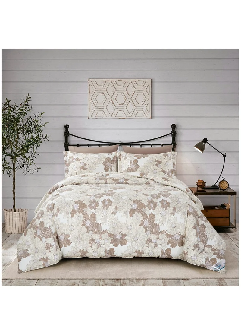 King Size 4-Pcs Fitted Sheet Set For Luxury Bedding With Floral Print Sheet And Pillowcase Set, Tan