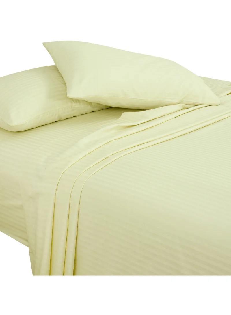 Bliss Casa 2 Pieces 1cm Stripe Bed Sheets Twin (100x200+30 cm) - Soft Satin Sheet Set with Pillowcases - Deep Pocket, Hotel Collection, Luxury Bedding Set include 1 fitted Sheet, 1 Pillowcase -Cream