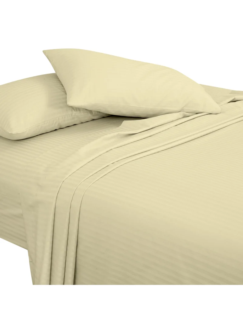 Bliss Casa 3 Pieces 1cm Stripe Bed Sheets Full (140x200+30 cm) - Soft Satin Sheet Set with Pillowcases - Deep Pocket, Hotel Collection, Luxury Bedding Set include 1 fitted Sheet, 2 Pillowcases -Cream