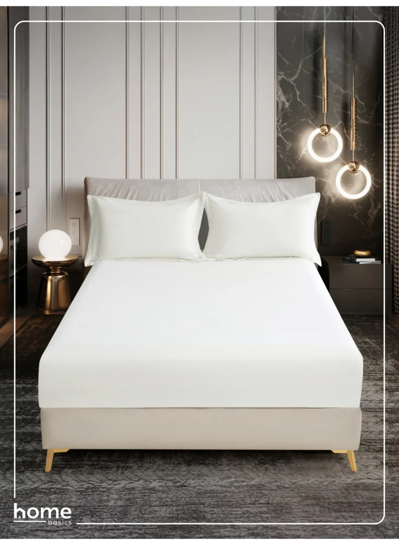 Bedding Fitted Sheet - Fits 200x200 Cm For Super King Bed - 3 Pcs (1 Fitted Sheet and 2 Pillowcases) - 35 Cm Deep Pocket - Solid Bed Sheet
