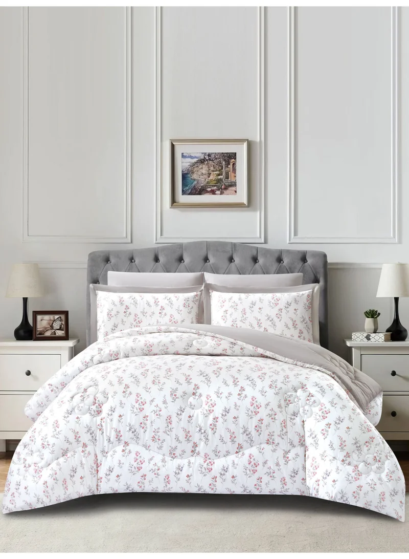 Bedding Comforter Set, King Size Fits 200x200 cm - 7-Pcs Digital Print Quilted Bed Set, Microfiber Fabric - 1 Comforter, 1 Fitted Sheet, 2 Pillow Shams, 2 Pillowcases 1 Cushion Cover.