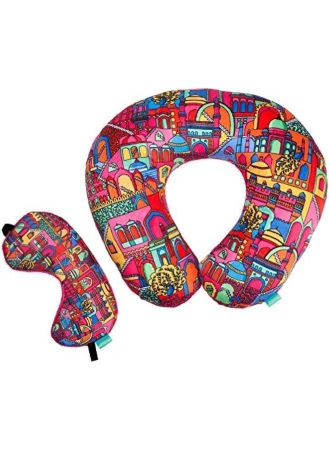 Jaipurscape Travel Pillow with Plush Eye Mask | Stylish and Trendy Printed Neck Pillow for Travel/Home/Office | Travel Essentials | Cushion Neck Pillow | Flight Accessories | Trip Essential