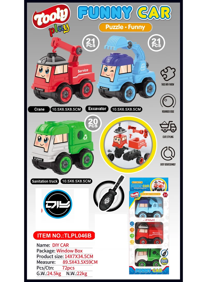 3-in-1 DIY Take Apart Toy Truck Set for Kids – Build Your Own Excavator, Crane, and Garbage Truck – STEM Construction Play Kit with Screwdriver Tool – Educational Toy for Boys & Girls Ages 3+