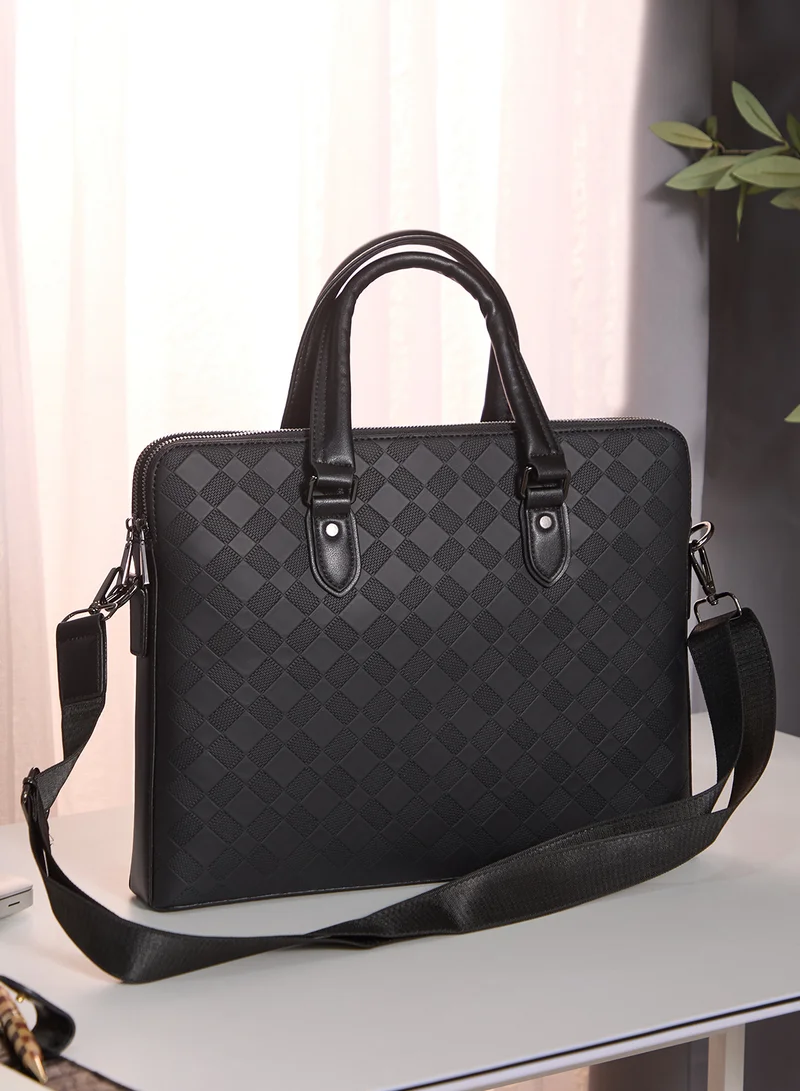 Men Textured Laptop Bag with Detachable Strap and Zip Closure