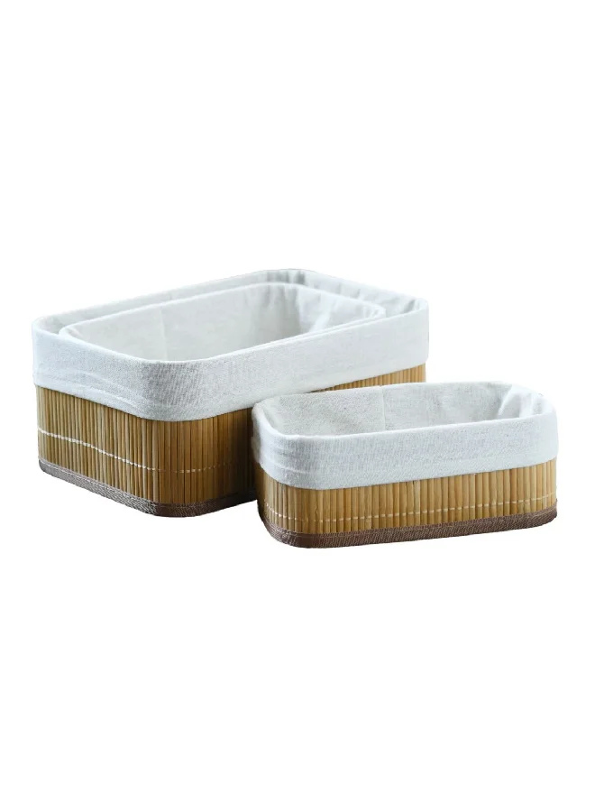 3-Piece Rectangular Shape Bamboo Storage Basket Set with Liner Brown and White 12 x 20 x 30 cm 2377