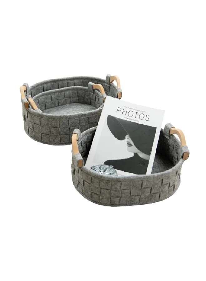 3-Piece Sturdy Open Top Design Storage Basket Set with Handle Grey 12.5 x 28.5 x 36.5 cm SB0388A-3