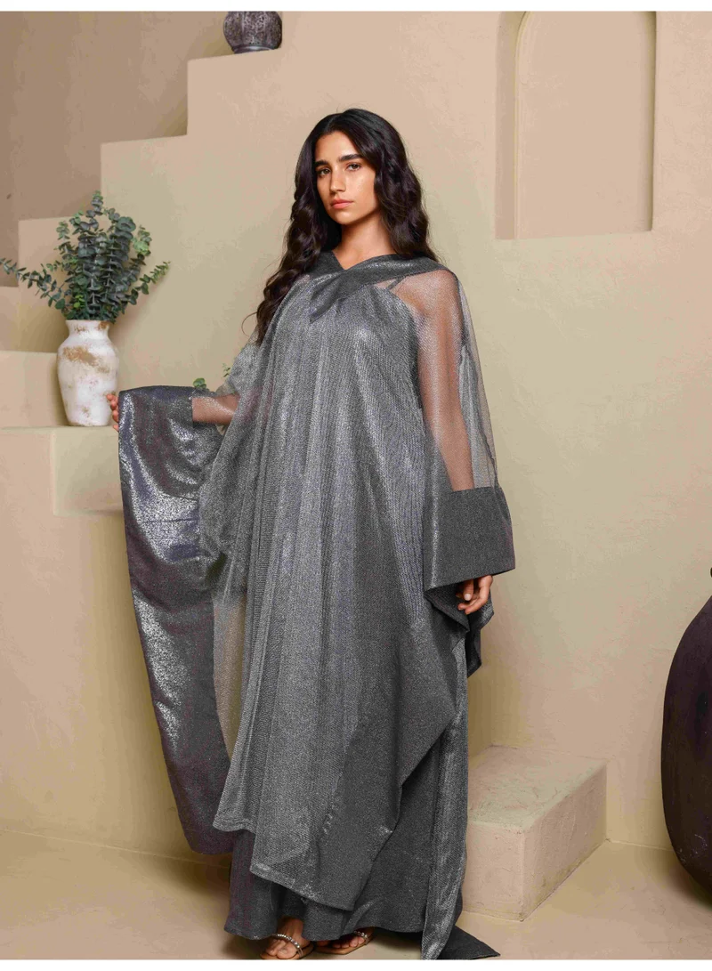 Elegant Sequin Floral Applique Jalabiya IK1057 Grey