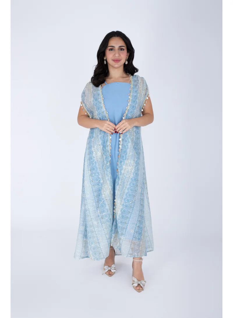 Classic Printed Jalabiya Cold Shoulder Crystal Designs IK601 Blue